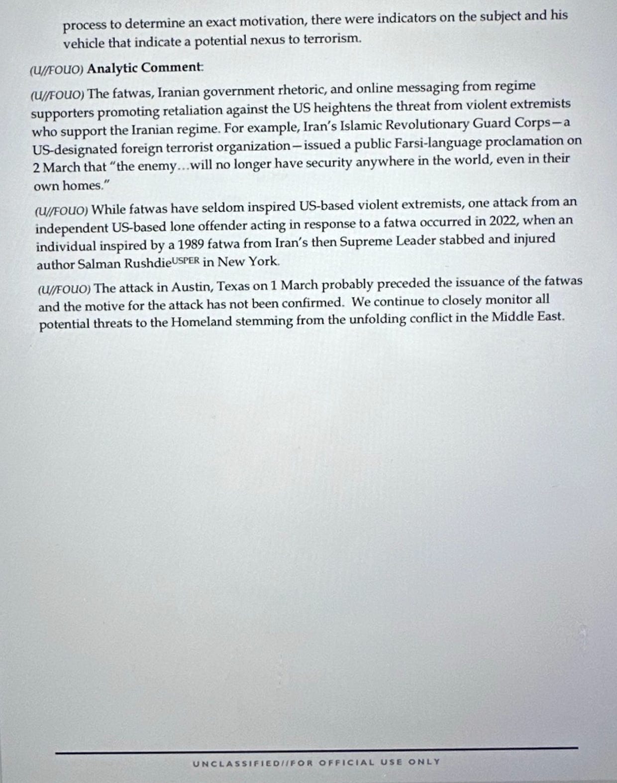 Document: Homeland Security Warns of Iranian “Fatwa”