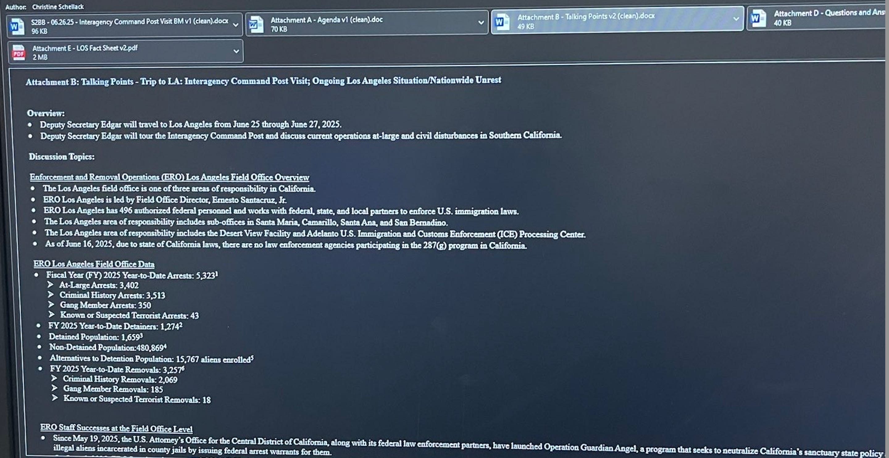 These data come from the Los Angeles field office of Immigration and Customs Enforcement (ICE) and cover the period from last October to June of this year. Provided to me by a law enforcement source, the data appears in an internal ICE memo detailing an upcoming visit to LA by homeland security’s deputy secretary Troy Edgar.