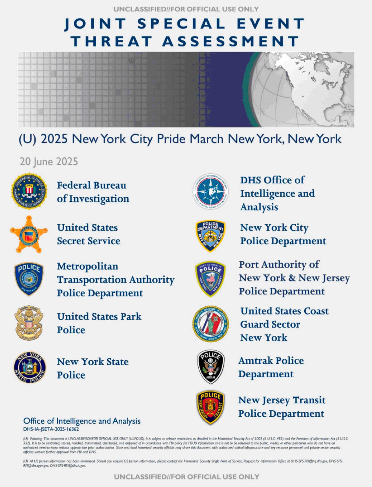 Apparently the governor does not know the ways of the national security state. Multiple New York law enforcement agencies are coauthors of the main intelligence report I obtained, an overview of threats to Pride events in New York across the country.