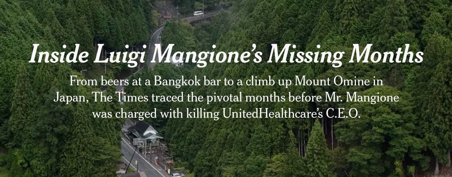 “Luigi Mangione was imbued with the dark powers of an assassin after climbing the sacred mountain Omine,” a representative sentence in the Times piece reads.