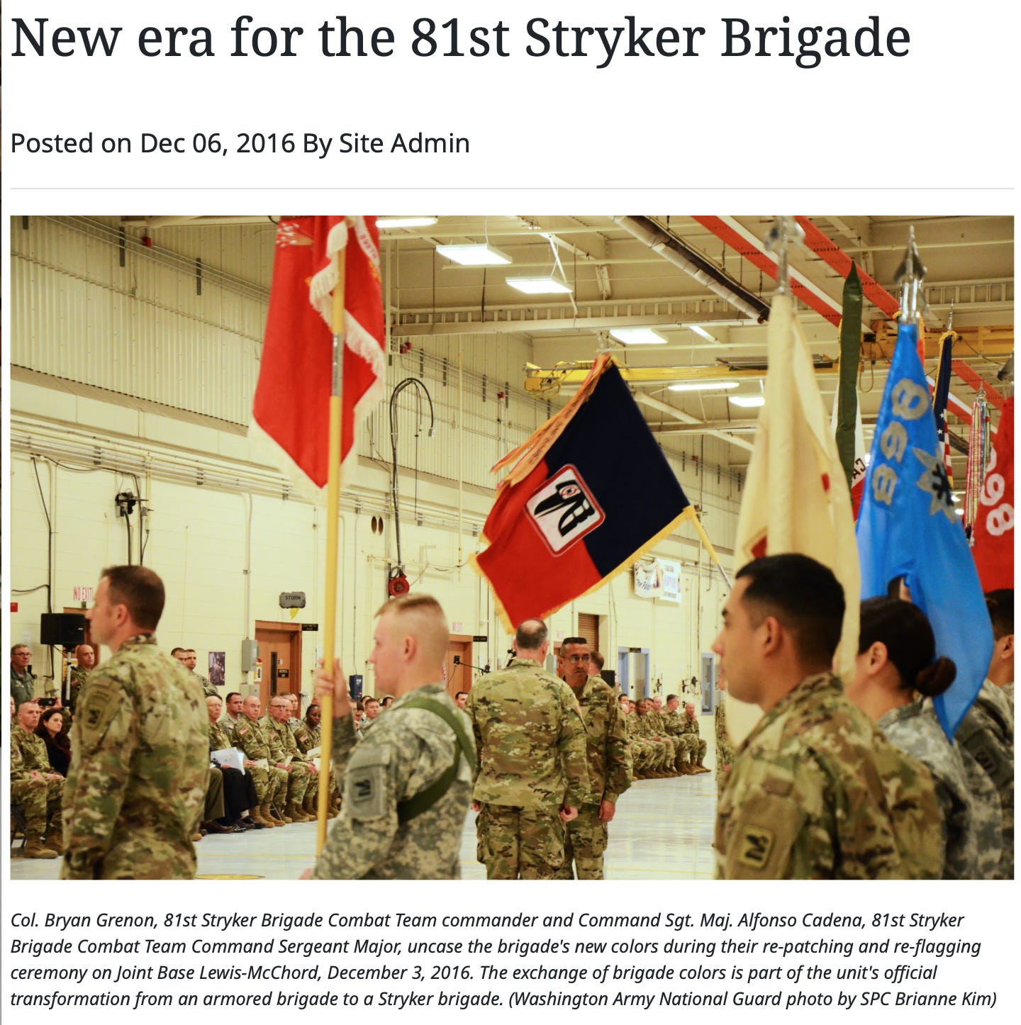 There’s just one problem: the patches on the shoulders of the National Guard troops in the picture identify them as being members of the 81st Stryker Brigade, a unit from Washington state that has subunits spread out over Washington, Oregon and California.
