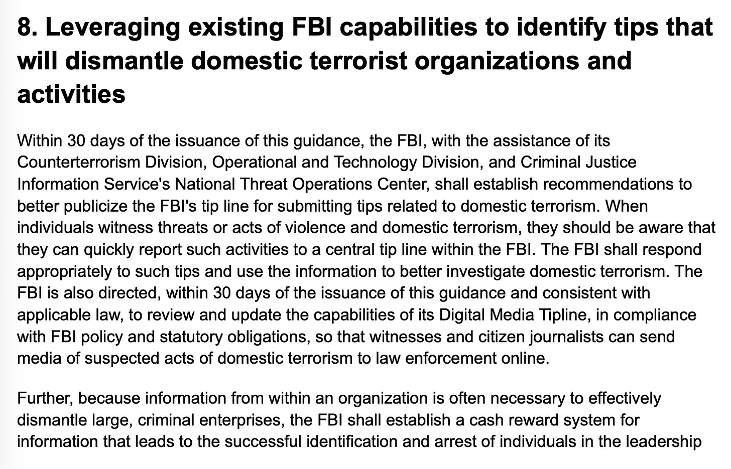 Reuters, thanks to its all-knowing “review,” goes on to selectively quote from the document without any sort of explanation about what it means and why it matters. The article also makes zero mention whatsoever of the memo’s authorizing a “cash fund” for Americans to tattle on their neighbors!