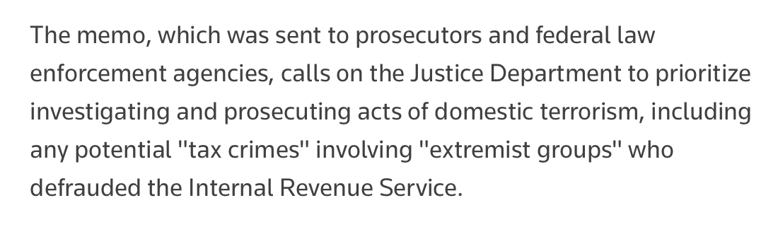 One of the only media outlets that even wrote about the Justice Department order, Reuters, failed to mention some of the most alarming developments contained within it, instead focusing on what could be the only boring part of the entire document — tax law and the IRS. (Not kidding!)